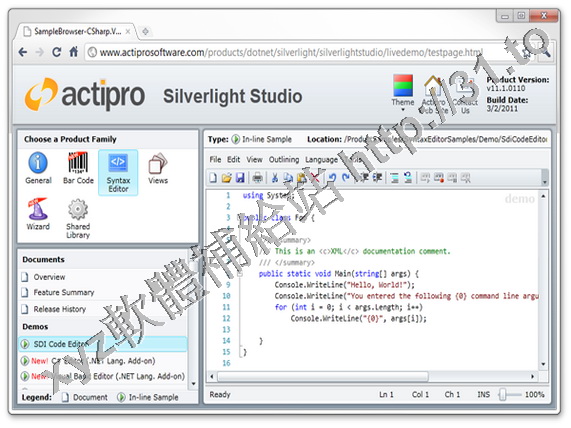 Actipro Silverlight Studio v11.1.0112 英文正式版(專業Silverlight框架用戶介面控制項軟體)