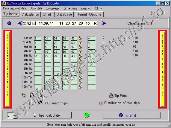 • Hoffmann Lotto-Experte 6 aus 49 v3.2.0.32 英文正式版(彩票選號助手軟體)